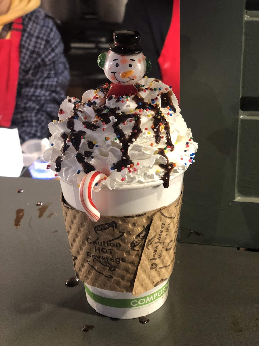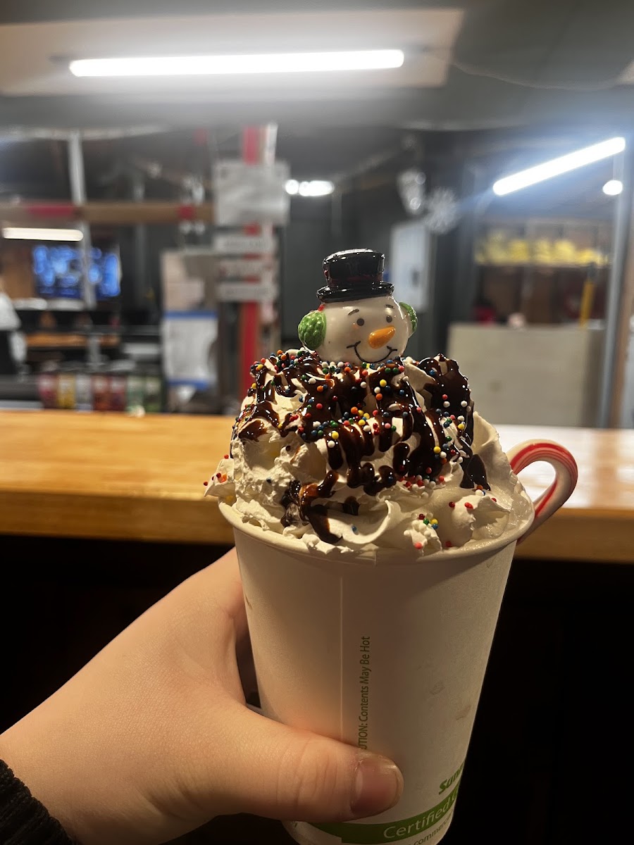 One of the must-try items on the menu is their signature "Great Snowman Hot Chocolate." This rich, creamy hot chocolate is a perfect winter treat, topped with a snowman-shaped marshmallow that brings a touch of fun to your cozy experience. It’s a simple yet indulgent beverage that pairs beautifully with their other standout items like the Oreo, which adds a delicious crunch to every sip of cocoa. Whether you’re seeking something sweet or comforting, the Snowman Hot Chocolate is a top pick and worth every penny.